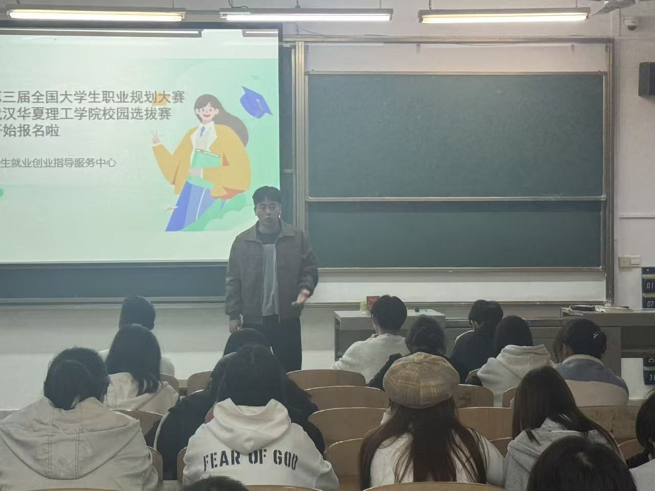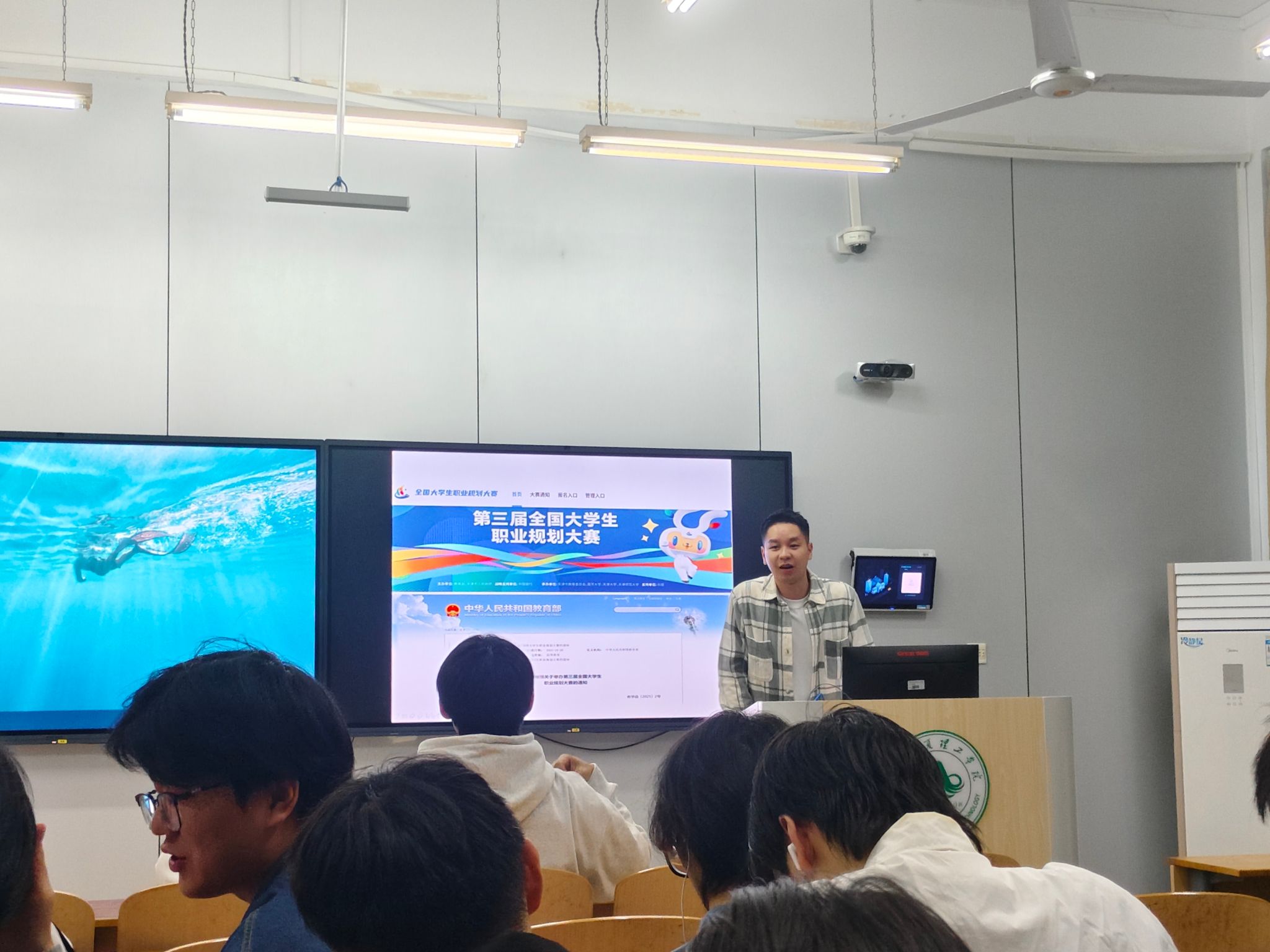 全体老师围绕大赛核心内容展开详细宣讲。从大赛的报名条件、赛程安排、作品要求到评分标准,老师进行了逐一解读,重点强调了职业规划书的撰写要点,包括自我认知、职业环境分析、职业目标设定、实施计划制定、评估调整等关键模块。同时,老师结合往届优秀参赛案例,通过图文并茂的方式,直观展示了优秀作品的亮点与特色,为学生提供了清晰的创作思路与参考范本。针对学生关心的“如何精准定位职业方向”“如何提升作品竞争力”等问题,老师现场进行了答疑解惑,引导学生从自身专业特长、兴趣爱好、职业素养等方面出发,制定切实可行的职业规划。