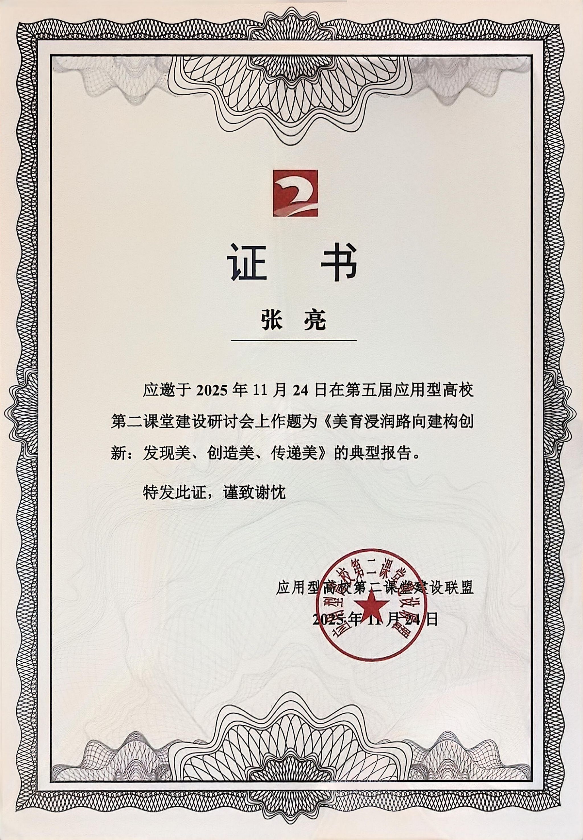 11月23日至25日,第五届应用型高校第二课堂建设研讨会在珠海横琴召开,张亮书记受邀作《美誉浸润路向建构创新:发现美、创造美、传递美》的专题报告。