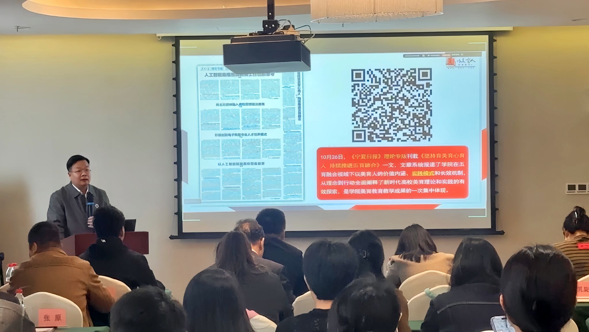 会上,张亮书记首先介绍了学校、学院在落实立德树人根本任务、深化“三全育人”综合改革、培养高素质应用型人才方面的成效。他指出,长期以来学院抓住思想政治教育提质增效的“硬核”问题,以“大美”涵润“大德”、成其“大人”,在坚定理想信念、厚植爱国主义情怀、加强品德修养、增强综合素质上下功夫,扣好大学生人生第一颗扣子。润物无声引导学生认识“国之大者”的理想之美、信仰之美、精神之美,使“小我”与“大我”在能力养成、人格形成中融通,守正创新育时代新人。他强调,学院始终坚持“真、善、美”的价值追求、始终坚持“发现美、创造美、传递美”的实践逻辑、始终坚持“启智润心、培根铸魂、挺膺担当”的育人向度、始终坚持坚持“育美、育心、育人”的教育旨归,推进“三维三阶”以美育人模式实践与探索,以美育引领第二课堂建设理论和实践成果在《宁夏日报》理论版发表。