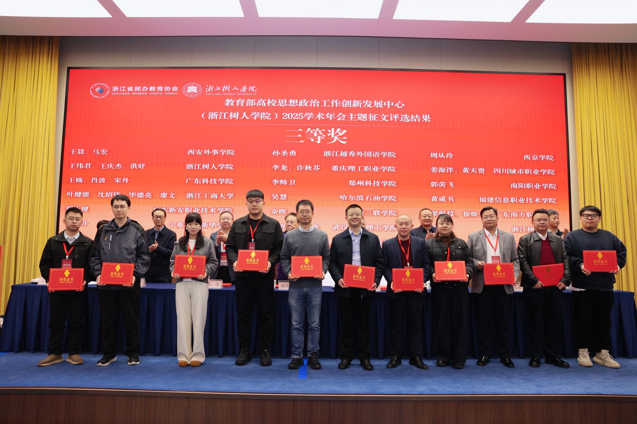 12月12日,教育部高校思想政治工作创新发展中心(浙江树人学院)2025年学术年会在杭州召开,我院张亮书记提交的《新时代高校学生社区就业育人机制探析》荣获三等奖。