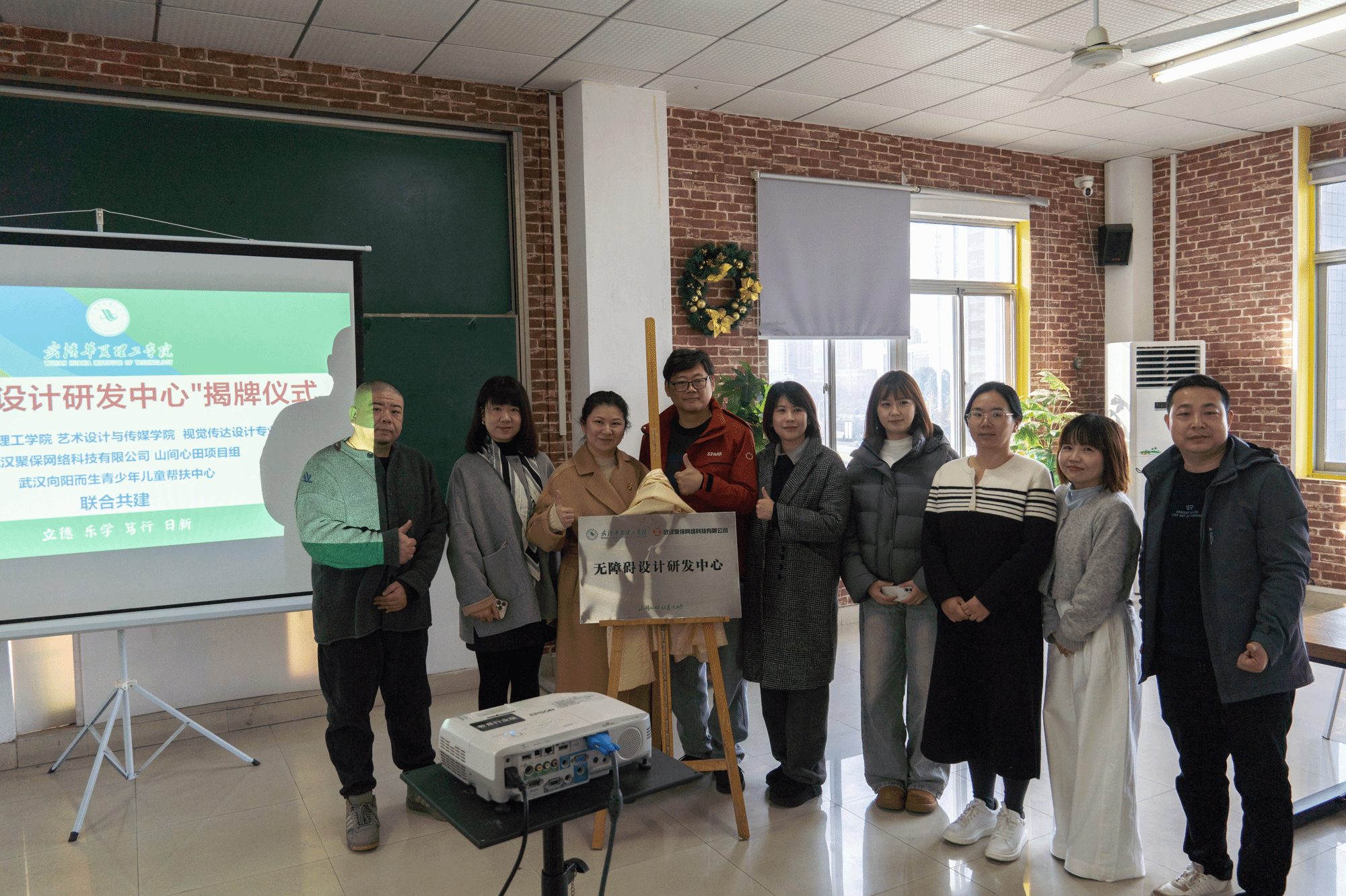 12月29日上午,艺术设计与传媒学院与武汉聚保科技有限公司校企合作签约暨“无障碍设计研发中心”挂牌仪式在学院“生活美加油站”举行。学院副院长邓婧与聚保科技“山间心田”项目创始人周焱共同为研发中心揭牌,标志着双方在无障碍设计与公益助残领域的深度合作正式启动。