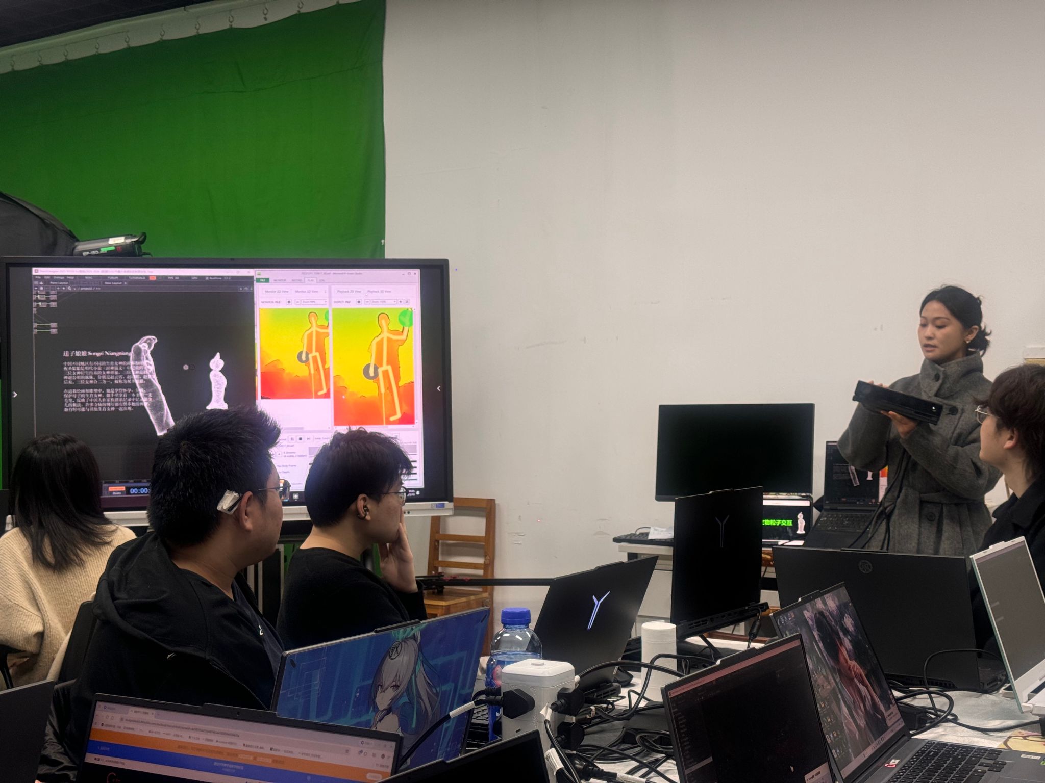 本次公开课聚焦Kinect具身交互在三维历史科普领域的应用,兼具技术实操性与文化融合性,课程目标明确、重难点突出,旨在让学生理解Kinect传感器工作原理与核心功能,掌握三维历史模型基础交互逻辑,体悟体感控制与历史科普结合的价值。熊梦真老师以讲授与案例教学结合的教学方法,搭配Kinect传感器、多媒体计算机等专业教学设备,为学生打造了沉浸式、互动式的课堂体验。