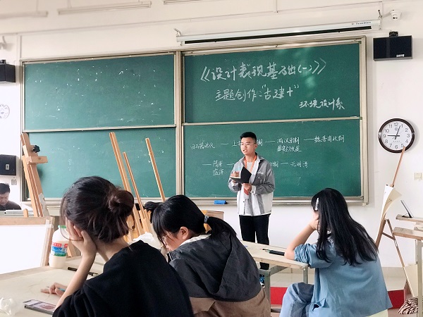 近日,环境设计专业《设计表现基础(一)》课程马上要结课了,为更好的让学生了解“古建+”这一创作主题,环境设计系主任付知、高日观、陈军三位老师邀请“中华营造——梁思成、林徽因文献展”建筑博物馆讲解员志愿者来到环境设计1211-3班艺术画室,为同学们展开了关于古建筑篇章的讲解。