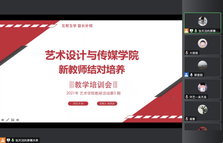 为进一步提升新教师的教学能力与专业水平,落实督导办教学资料抽查任务,9月30日中午12:30,我院召开新教师结对培养教学培训会,会议由艺术学院副院长张天洁主持,教学督导李娟老师、教学办郭俊丽老师等15名新教师及其结对导师参与本次会议。