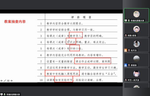 最后,张天洁院长强调,本次教学资料抽查结果将作为学院教学工作评价的重要依据,结对教师应严格把关落实抽查要求,指导帮助新教师完善教学内容,提升教学能力,推动学院教学质量稳步提升。