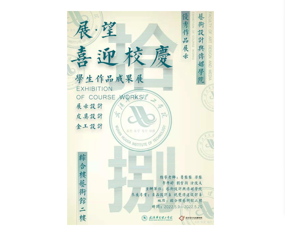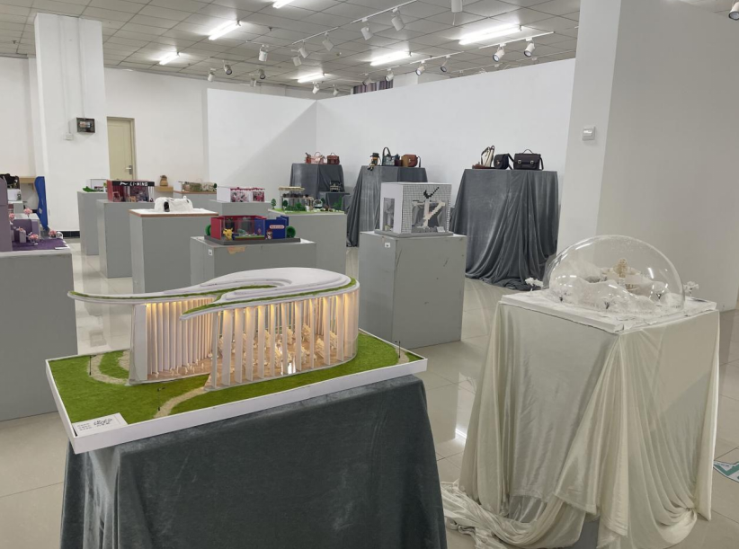 此次展览汇集了两个专业、三个不同班级的学生作品,含视觉传达设计专业《展示设计》课程成果,产品设计专业《课程设计》、《展示设计》课程成果,共计 64件。展出作品以展示空间模型、手工皮革制品、金属工艺品为主,集中反映了学生的动手能力与创新思维。为迎接我校十八周年校庆,艺术学院教师在教学实践过程中,积极引导学生进行创作,展现课程改革与创新成果,以促进和提高学生会思考、会动手、会交流、会生活的能力,突出了创新思维、设计实践在专业课程中的重要性,贯彻艺术学院人才培养在教学工作落实及一流专业建设目标。