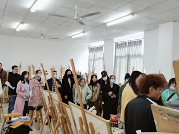 课上,朱琦老师通过素描中对粗细不同的线条在结构中的表现、不同浓淡变化进行结构素描的空间表现、线条的轻重在结构素描中的空间表现三个方面,从理论知识上让学生们进一步了解结构素描的空间表现。通过教师逐一对同学们的作品进行讲解和分析,从实例上感受到虚实对比在结构素描中的表现重要性。