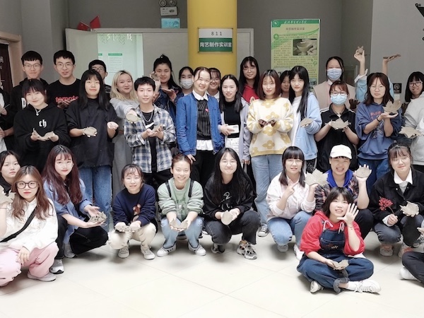 在不知不觉中,两个半小时的体验活动结束了,同学们分工合作,有条不紊地将教室打扫干净,恢复原状。课后同学们都表示意犹未尽,期待着王老师下次的班会,更期待下次的陶艺体验课程。在依依不舍中同学们捧着作品与王老师进行了合照,记录下了这珍贵的一刻。