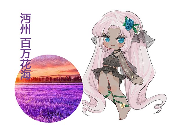 这些“花仙子”有的美丽,有的活泼,有的高冷,有的神秘,还有的有一些害羞。作者将不同花朵的特点提炼出来进行创作,人物灵动,表情传神。不同的“花仙子”赋予了这些花海不同的拟人化的特征。