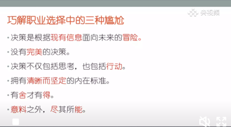 在此次讲座中,金蕾莅老师从“什么是决策”和“决策过程的三种尴尬及解决策略”两方面,为我们做出就业指导。为我们解答了如何解决职业选择中的三种尴尬。