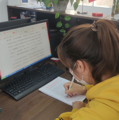 在防疫工作的同时,王梦积极响应国家“停课不停学”的号召,在网上进行上课与政治理论的学习。谈及学习与志愿岗位二者如何兼顾的问题,王梦表示作为学生,学习是放在第一位的,但疫情当前,每个人都应该尽自己的一份力来渡过此次难关。由于她是防疫志愿者中的唯一一名学生,一起参与志愿服务的党员志愿者会在她有课期间分担部分职责。而且网上授课形式是以视频通话和录课形式,上课方式多样,能灵活地兼顾学习和防疫工作。
