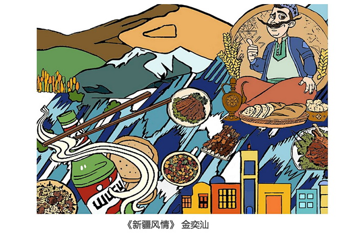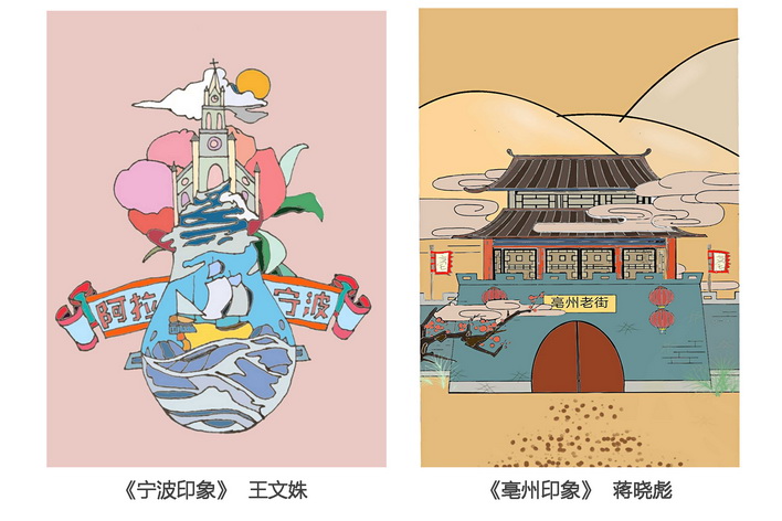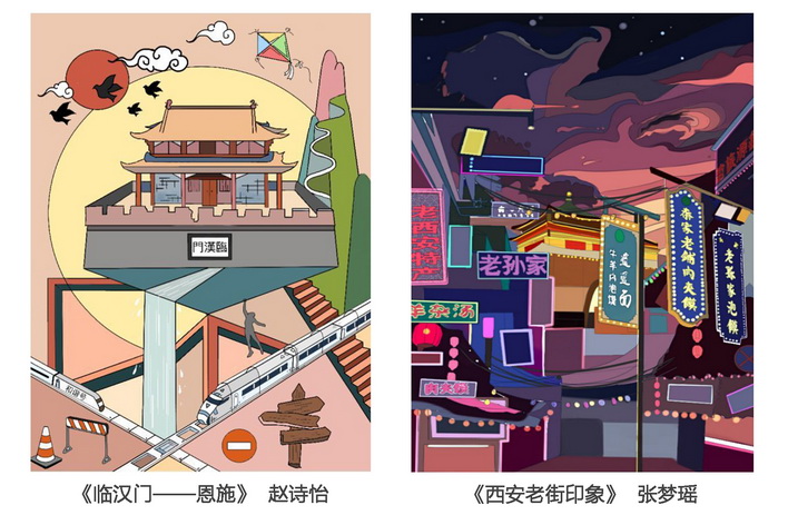 虽然受到疫情影响,传统意义上需要在画室里进行的《设计色彩》课程变成在家里完成,画板、颜料和画笔也变成了大家的手机或者电脑,但是同学们并没有因为课程形式的变化降低对自己色彩感知的要求。在刘瑶老师的指导下,大家以疫情为最好的教材,充分展开自己的想象力和创造力,描绘出对家乡、对战胜疫情的美好愿景。