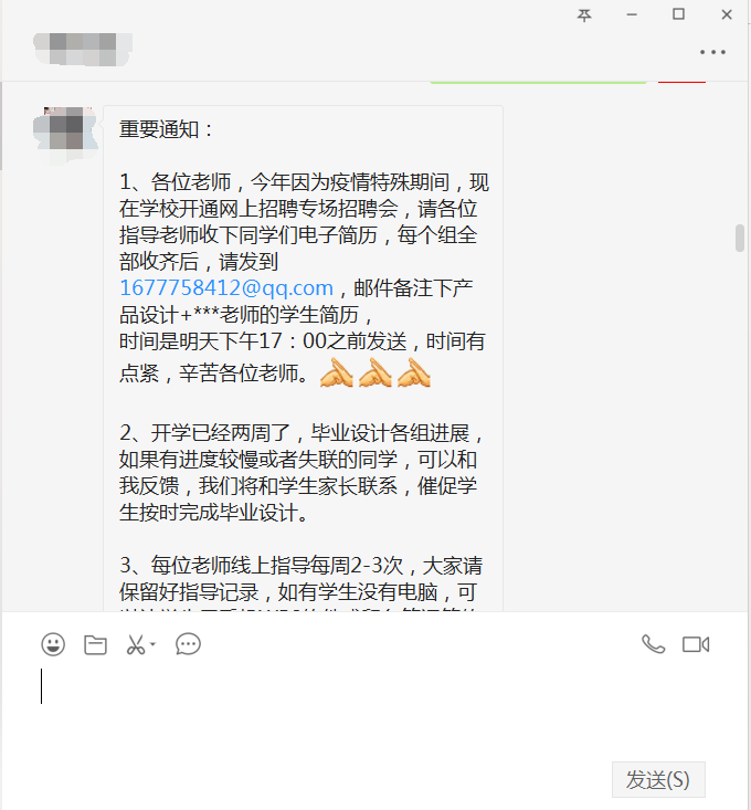 老师们在指导同学们在完成毕业设计的同时,一直保持同学生本人、家长的良性互动,及时发布就业招聘信息;同时就借助学校网上双选会的时机,通过检查督促指导学生的求职简历,激发学生的求职意识,培养学生的求职能力。
