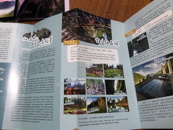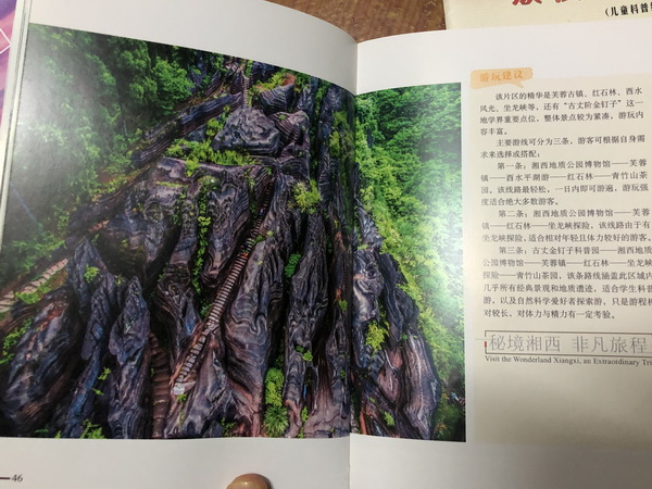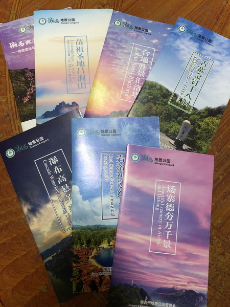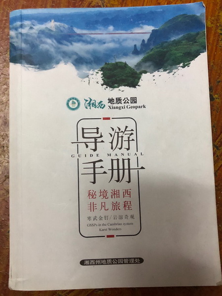 分享会上,蒋老师不仅向在座师生展示了湘西地质公园的地质、人文、自然风貌、整个申报工作的流程,也向大家介绍了自己参与的科普及旅游文本的编制成果,主要是导游手册、科普绘本、景区宣传折页等的脚本、文本、图文编制等内容。蒋老师一共编写了接近5万字的内容,在上千张图片中进行筛选,前前后后修改十余次,工作量可观。