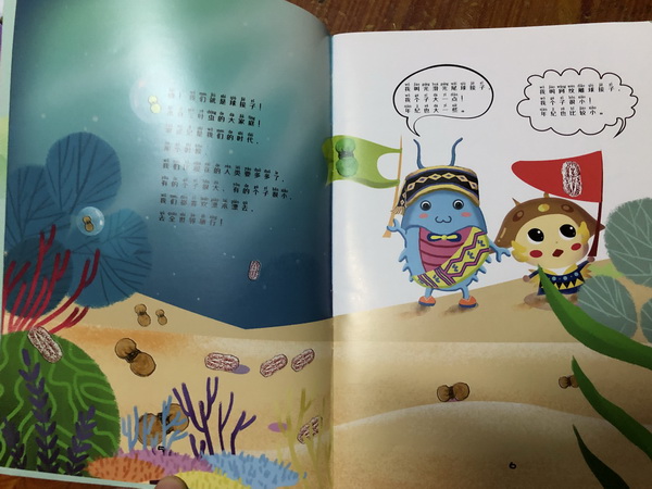 在这次项目中,蒋老师还与1957设计中心的姚田老师合作,进行了科普绘本的创作,这是1957中心跨部门协作的有益尝试。这件由蒋老师提供脚本和地质知识支撑、姚田老师负责图形创意及绘制的绘本,得到了申报工作组的高度肯定。这些工作成果与其他成果一起,被翻译成多国语言,在2019年上半年,迎接了联合国教科文组织世界地质公园管理协会的审核工作,并获得了好评。