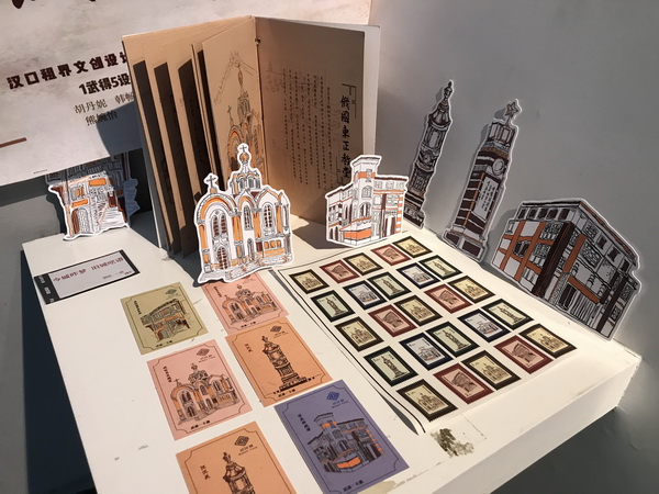 作品“今城昨梦 旧城呓语”的设计者视觉传达1181胡丹妮向现场观众分享了自己的设计理念及切身体会。她表示本次文创作品的主题与“旧时代”息息相关,为了营造一种沉浸式的体验,用红黄双色的手绘打造偏复古的基调。同时,为了以一个立体的剪影形式展现武汉形象,小组成员们主打设计了一款关于“武汉租界”的贺卡以及公交卡、T恤衫、邮票、明信片等衍生产品。“我们的产品将会在周边的一些文具店,书店,精品店等售卖。随着时代变迁,很少会有人以文创产品为礼物,但我们仍然想留住这份曾经的美好。”