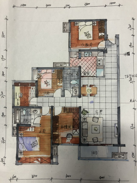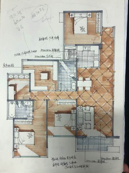 本学期以来,1957设计中心的环境艺术设计部,在过往工作的基础上,为聚焦提升学生的设计内涵和美感意识,加强了课堂外的学习。两周前,设计部负责人蒋樱老师,与原香港郑中设计事务所(CCD)一位资深设计师朋友联系,希望对方能够给工作室的同学们提供指导。该位设计师让工作室的同学在一个真实的原始平面图中,进行方案设计的手绘练习。由于设计师本人远在深圳,一周后学生完成方案平面图,蒋老师将图纸传给对方批改,设计师直接在图纸上进行修改并提意见回传,全程与设计师日常进行设计方案交流的形式类似。同学们看到自己的图纸被业内的优秀设计师亲笔修改,十分惊喜,蒋老师还转发了他对学生们的设计思路方面的指导,同学们觉得受益匪浅。