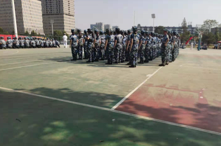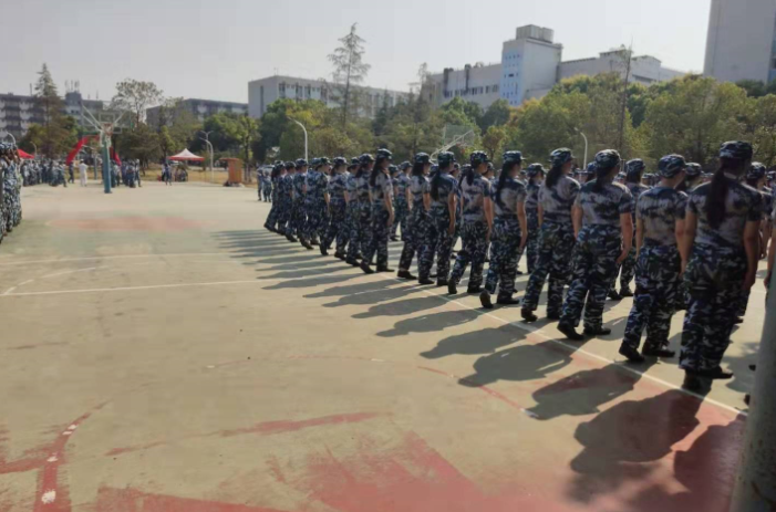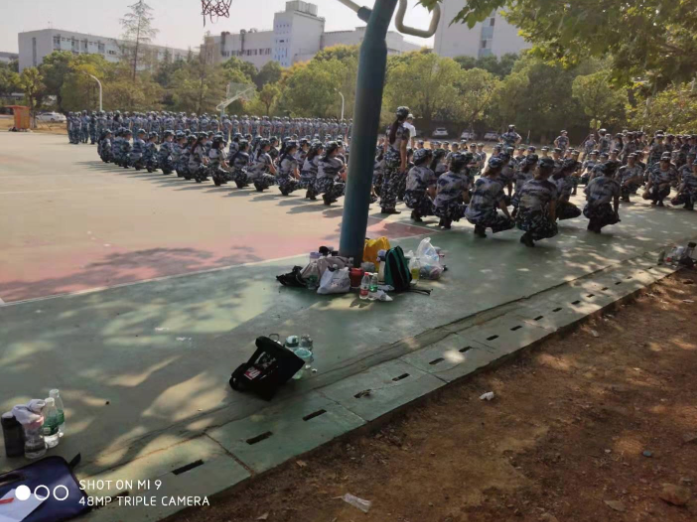 今天9月9日,武汉华夏理工学院运动场的军训正如火如荼的进行着,室外35°的高温并没有打消2019级新生的军训热情。