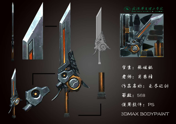“从当前的社会市场需求来讲,近几年的游戏、影视等娱乐视觉需求火速升级扩大,CG设计人才可谓是超级“抢手货”,3D游戏美术师在现在VR游戏时代,属于高技术流级别的职位,前途和钱途度不可限量”,指导老师肖赛锋如是说道,“这门课主要以3Dsmax软件为主,PS及Bodypaint为辅来进行设计制作,以项目制作的形式,从模型-展UV-贴图材质绘制-灯光渲染,整个流程都让每一个学生参与进去,且贯穿始终,只有这样一遍一遍地反复循环训练,学生们才会迅速成长,内化为己有,结合我自身的企业实践经验与课堂教学,能进一步确保提升了人才培养的质量,为同学们的就业打下良好的基础。通过这门课的学习,学生们已经掌握了3D游戏美术设计相关的知识并能运用于实践,如果机会合适,我还会推荐他们其中非常优秀的部分同学去企业实践”