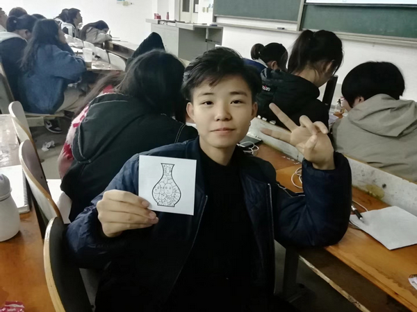 “学生们做的玉壶春瓶创意很有意思,很有创意,有些带着丰富的表情、有些内含山水、有些穿上新衣裳……”梁黎看完学生们充满创意和激情的作品,频频点头,并就传统图形的现状、市场前景、创意方法等细节问题与学生进行互动交流,不仅分享了经验,还对学生们的创意设计提出了建议。