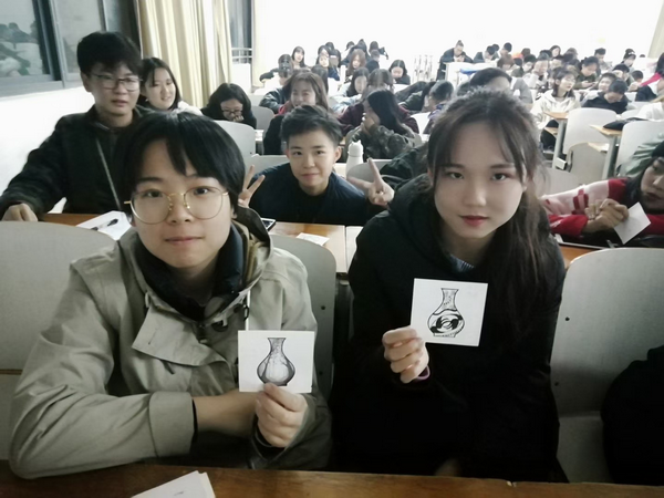11月20日晚上6点,“时尚传统图形——18级视觉传达系专场”在我校教学楼成功举行,这是“玉壶春瓶”首次以时尚造型出现在人们视野,该专场由视觉传达系梁黎老师主讲,视觉传达2018级学生参加与互动,现场近百名学生共享了一场长达两个小时的艺术与创意的盛宴。