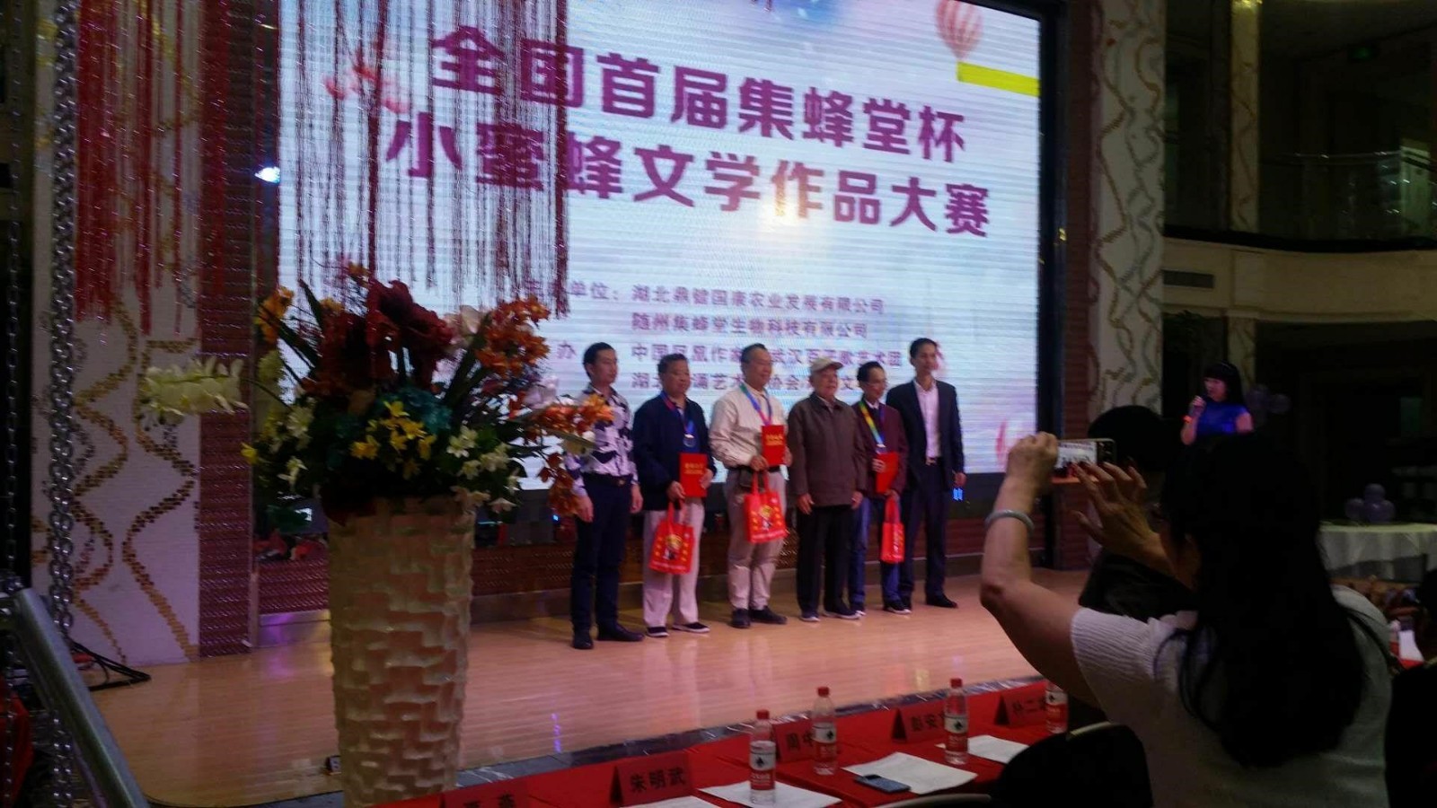 近日,由中国凤凰作家网、湖北省朗诵艺术协会、随州市集峰堂生物技术公司举办的《全国首届集蜂堂杯小蜜蜂文学作品大赛》颁奖典礼在武汉举办。武汉华夏理工学院数字媒体艺术专业教授周中华荣获特别奖,原湖北省作协副主席、武汉作协主席管用和为他发了奖状和奖牌。