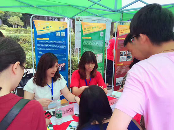 “你看,你比较喜欢策划和设计,我觉得你可以了解一下……”。类似这样的对话不时从我院咨询处传出,温柔的声音,耐心的解答,有趣的讲解,让路过的学生家长频频停下脚步注目。我院设有网络与新媒体、广告学、产品设计、环境设计、数字媒体,视觉传达六大专业学科,在和老师们的沟通中,不少人加深了对这六门专业的理解并表现出了浓厚的兴趣。进而,我院老师还告诉前来咨询的学生和家长我院设有艺基金赞助学生的同时,还设有多个工作室,能够锻炼学生各方面的能力。对于出国留学的问题,老师们也给出了解答,我校定时邀请国外知名大学的教授来我院开展学术讲座,开拓同学们的视野 ,加深同学们对国外教育模式的理解。