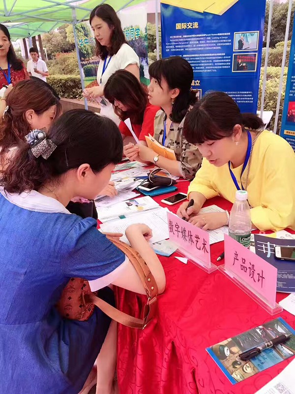 6月24日上午8点,武汉华夏理工学院的校园主干道上早已是人头攒动,我校艺术设计与传媒学院咨询接待处涌现一批又一批的学生和家长。艺术设计与传媒学院院领导和各系主任、专任教师为来到现场的学生和家长解疑答惑。