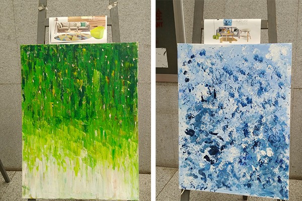 据悉,《装饰绘画》这门课程旨在让学生学会运用点、线、面三大构成来表现图案的节奏,赋予作品抽象化、规则化的形式美。而这次的节课作品正表现出不同的同学对于装饰艺术的不同理解——简洁明亮的蓝色海洋、色彩鲜艳的线条绘画、清新翠绿的茂密森林……浓烈又不失淡雅,简单又不失优雅。