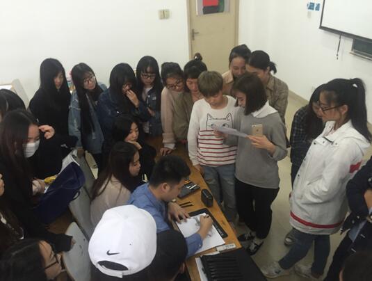 每位同学都被他的技法深深折服,一个多小时的课程同学们都非常踊跃的参与和观摩。盛海波同学也给这次的手绘练习课堂注入了新的元素和活力,让同学们知道一位真正的设计师是如何进行设计草图的绘制的。整个过程中,课堂气氛非常热烈,在盛海波一次次一张张的现场手绘设计稿中,同学们也真正感受到了一位设计师的价值所在。