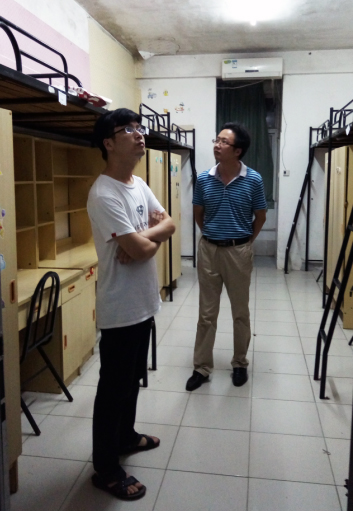 我院领导走进每一间寝室,逐一检查,将有问题的地方告知学长班主任,由学长班主任进行记载并报告给维修部门。在检查的过程中,大家都认真仔细,每个角落都不放过。有的寝室灯不亮,或者厕所的门有的坏了,大家都会把自己检查到的问题指出来,我院领导十分重视这次的检查,共同希望新生有一个良好的住宿环境。