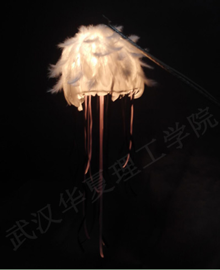 鲍艳红老师对很多作品给予肯定。例如利用彩带和羽毛制作的“水母灯”,在黑暗中亮起的时候如水中的水母游动栩栩如生。还有用卡纸加上几何创意制成的灯等,本次灯具制作使用的材料多种多样,做出的效果也缤纷多彩,有许多产品也将申请专利。