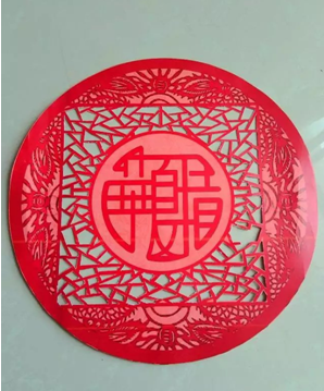红色的纸,镂空的文字,这种技巧娴熟的手工艺本是少见,这种手工艺和情谊的表达联系在一起更是难得。人文学子的书法,刚劲有力,一笔一划展现的无限的华夏情。