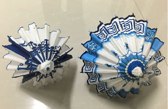 人文学子将自己的专业知识技能运用到这次作品中,每一个作品都是作者花费心血做出来的。饱含着深情。青花的雨伞,投影的灯,他们专业课上的作品被搬上“舞台”,夺人眼球。