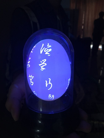 视传1152的宁爽同学在鹅蛋上精美的雕刻,让校徽,校训生动的浮现在鹅蛋上。发光的鹅蛋更是美丽动人。