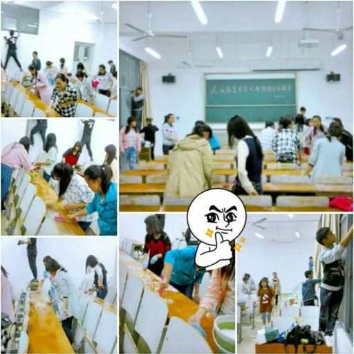 近期,校园内“牛皮癣”、“长明灯”等不良现象有所抬头,这些严重影响了大学生自身形象以及校园环境。人文与艺术系开展教室文明行为(随手关灯、文明自习、卫生保持等)为重点内容。4月19日晚,人文与艺术系学工办组织全体大一学生对早晚自习教室进行大扫除活动,效果明显。