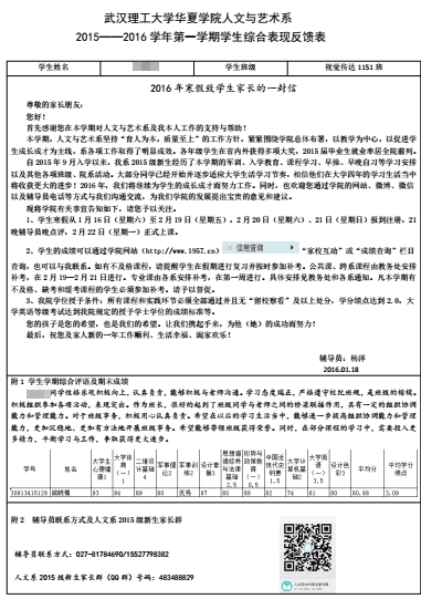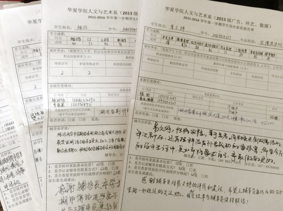 辅导员王鹏老师采取综合素质报告单的形式与家长联系,并回收回执确保互动有效,得到了家长对辅导员工作的大力支持。毕业班辅导员付知老师给每位学生单独建立档案,采取多种方式与家长沟通,并及时记录。辅导员杨洋老师利用学期综合情况反馈表将学生情况如实告知家长,并注重发挥家长QQ群、微信等新媒体的作用。
