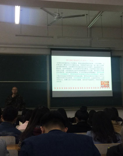 刘老师在向同学们介绍了两会的基本情况之后,着重和同学们解读了政府工作报告。他结合大学生实际,特意节选了政府工作报告中关于毕业生就业创业、教育发展和文化改革发展三个部分,跟同学们做分享。