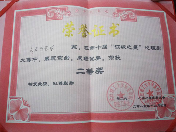 12月5日晚6点30分,由我院心理教育中心主办,心理协会承办的以“我演我心,演绎青春”为主题的第十届心理剧大赛在学术报告厅隆重举行,人文与艺术系在该心理剧大赛上斩获二等奖。
