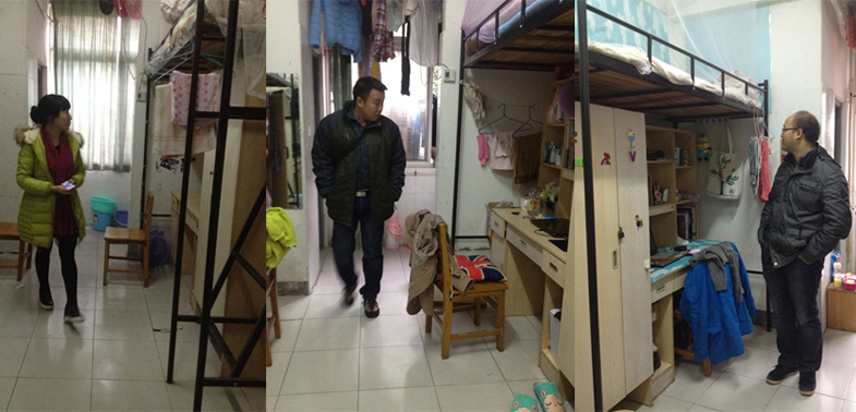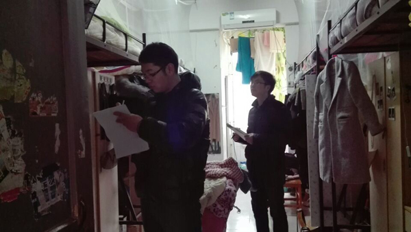 12月15日下午4时,人文与艺术系学工办主任刘静带领本系辅导员王鹏、刘浩波、刘旭延、付知对全体寝室进行了突击检查。