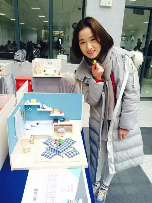 “哇塞,这个清新田园风格好漂亮啊!小画板做的真精致。”“你看你看,这个衣柜的小抽屉是可以拉出来的,感觉做的好细心啊!”“天哇!这个海洋主题风格宿舍也美的不要不要的呢!”路过观赏的同学纷纷表示。据了解,本次展览的每一个作品都为环境设计同学单独设计完成,学生通过前期一周的基础理论学习结合自己的设计灵感为自己的宿舍定一个主题并画出草图,经过付知老师的指导将草图完善再进行后续的模型制作。