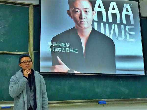 12月16日晚,窗外寒风瑟瑟却挡不住2教101的热情。人文与艺术系邀请AAA数字艺术教育集团总部品牌创意总监张墨晗老师来我校给艺术专业学生上了一堂生动的《创意&营销》课程。张墨晗老师曾就任过正邦广告创意总监传播总监,CBS美国哥伦比亚户外传媒美术指导,奥美广告美术指导等国际知名广告品牌公司职务,并先后完成过东航新形象,海尔集团,华夏银行,农业银行3年新传播方案等。负责过宝马汽车,玛莎拉蒂,康师傅,耐克等品牌。人文与艺术系常务副主任李娇,艺术设计教研室主任汪丹及李娟、傅强老师参与了本次的课程讲座,张老师用幽默亲切的方式给视觉传达设计专业及广告设计专业的同学们分享多个经典案例。