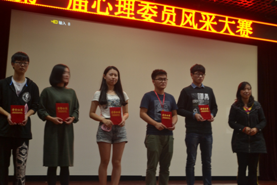 我系心理委员王琴、童璐、许庆玉、骆卓颖、彭博在本次比赛中凭借出色的表现得到了优秀心理委员的奖项