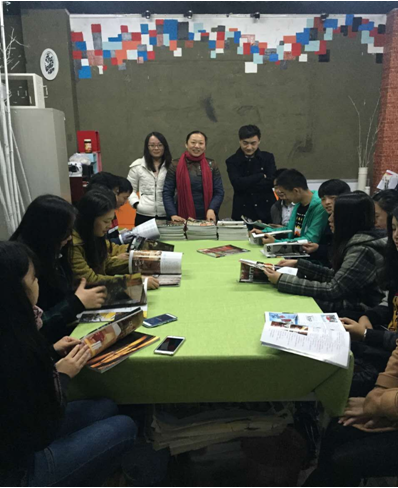 满满一桌的书籍杂志,寄托着蒋老师对工作和学生的无私情怀,也是华夏学院教师们热爱本职工作的具体体现。此次捐书无形中加深了师生情感,也增强了1957环境艺术设计工作室的凝聚力。仪式结束后,同学们即刻对所捐赠书籍以及工作室原有书籍进行了分类贴签整理,这座小小的环艺工作室图书馆在师生们的共同努力下,必将在未来成为工作室的精神家园。