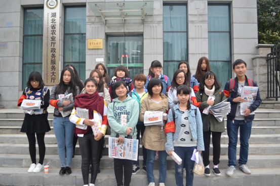 10月31日上午8点,武汉理工大学华夏学院人文与艺术系青年志愿者协会成员开展了义务卖报活动,阳光义卖在丁字桥路沿街附近随爱蔓延。