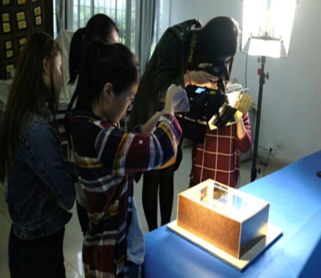 针对2015 东莞杯国际工业设计大奖赛设计众包专题设计,我系同学参加东莞市食品有限公司旗峰食品公司的旗峰腊味产品礼盒及礼盒袋包装设计和展示柜设计,在其中的展示设计方案中,同学们都进行了实物模型制作,为了使参赛作品的设计表现效果更好,系实验中心积极提供帮助,新建的数字媒体与虚拟艺术实训中心发挥自己优势,在冲刺关键阶段主动配合,运用实验中心的专业设备拍摄展示设计模型,为参加设计竞赛后期提交稿锦上添花。