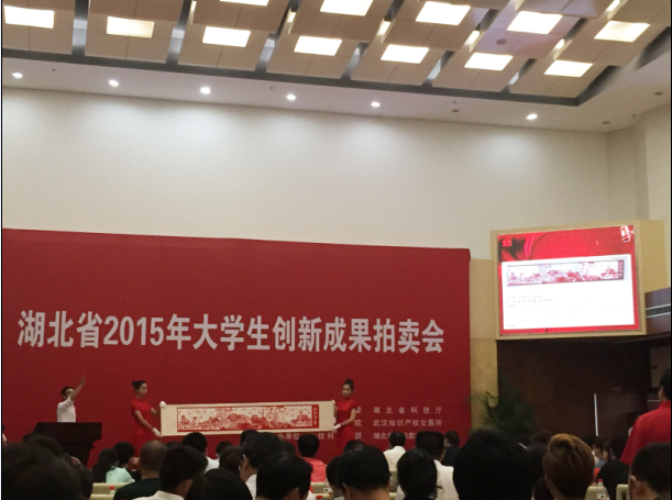 6月23日下午,湖北2015大学生创新成果拍卖会圆满落下帷幕。我院团委副书记姚卓夫、人文与艺术系党支部书记孙文胜、人文与艺术系13、14级辅导员王鹏、刘浩波以及人文与艺术系学生代表谌权出席了此次创新成果拍卖会。我院人文与艺术系环艺1132班谌权所创作品备受好评,并且被成功拍卖。