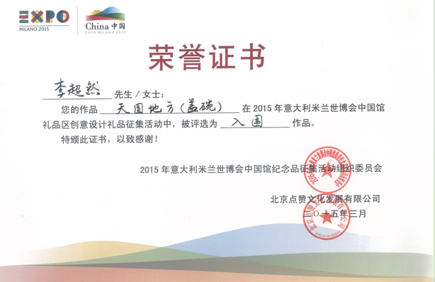 2015年意大利米兰世博会中国馆礼品区创意设计礼品征集圆满落下帷幕,人文与艺术系工业设计1113班学子李超然在在此次比赛中荣获2个入围奖,其设计获奖作品将由本次征集活动的承办方——北京点赞文化发展有限公司出资进行实物生产,在米兰世博会中国馆的礼品区现场展售。