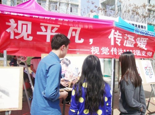 视觉传达1132团支部结合专业特色,日前在一食堂门口展开了以“视平凡,传温暖”为主题的特色活动,吸引了大量同学前来参与。他们鼓励同学们看见生活中那些看似平凡却又不那么平凡的小事,然后用行动来传递那份平凡中隐含的感动,而大家也要把这份感动和温暖用行动来延续下去。