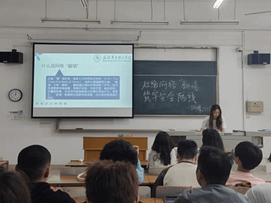 本次主题班会围绕“什么是网络 ‘翻墙’”、“‘翻墙’危害有哪些”、“哪些行为属于‘翻墙’”、“‘翻墙’行为如何自查”四个方面展开,让学生理解网络安全的重要性,了解网络‘翻墙’的危害,并学会如何正确使用网络,杜绝网络‘翻墙’。